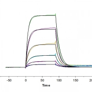 The protein has a predicted MW of 82.7 kDa. Due to glycosylation, the protein migrates to 90-115 kDa based on Tris-Bis PAGE result.