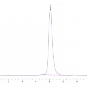The protein has a predicted MW of 54.5 kDa. Due to glycosylation, the protein migrates to 63-73 kDa based on Tris-Bis PAGE result.