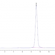 The protein has a predicted MW of 51.2 kDa. Due to glycosylation, the protein migrates to 55-60 kDa based on Tris-Bis PAGE result.