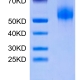 The protein has a predicted MW of 48.7 kDa. Due to glycosylation, the protein migrates to 70-80 kDa based on Tris-Bis PAGE result.