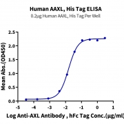 Immobilized Human AXL, His Tag at 2ug/ml (100ul/well) on the plate. Dose response curve for Anti-AXL Antibody, hFc Tag with the EC50 of 15.5ng/ml determined by ELISA. See testing image for detail.