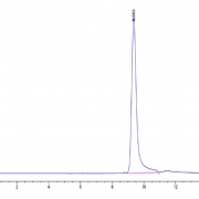 The protein has a predicted MW of 25.3 kDa. Due to glycosylation, the protein migrates to 38-50 kDa based on Tris-Bis PAGE result.