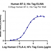 Immobilized Human B7-2, His Tag at 0.5ug/ml (100ul/Well) on the plate. Dose response curve for Human CTLA-4, hFc Tag with the EC50 of 0.12ug/ml determined by ELISA. See testing image for detail.