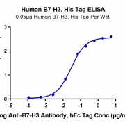 Immobilized Human B7-H3, His Tag at 0.5ug/ml (100ul/Well) on the plate. Dose response curve for Anti-B7-H3 Antibody, hFc Tag with the EC50 of 29.4ng/ml determined by ELISA. See testing image for detail.