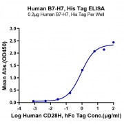Immobilized Human B7-H7, His Tag at 2ug/ml (100ul/well) on the plate. Dose response curve for Human CD28H, hFc Tag with the EC50 of 0.89ug/ml determined by ELISA. See testing image for detail.
