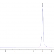 The protein has a predicted MW of 40.7 kDa. Due to glycosylation, the protein migrates to 49-55 kDa based on Tris-Bis PAGE result.