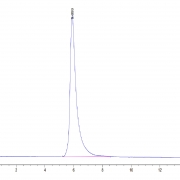 The protein has a predicted MW of 24.7 kDa. Due to glycosylation, the protein migrates to 25-30 kDa based on Tris-Bis PAGE result.