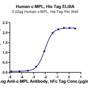 Immobilized Human c-MPL, His Tag at 0.2ug/ml (100ul/Well) on the plate. Dose response curve for Anti-c-MPL Antibody, hFc Tag with the EC50 of 9.1ng/ml determined by ELISA. See testing image for detail.