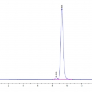 The protein has a predicted MW of 32.22 kDa. Due to glycosylation, the protein migrates to 40-50 kDa based on Tris-Bis PAGE result.