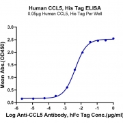 Immobilized Human CCL5, His Tag at 0.5ug/ml (100ul/well) on the plate. Dose response curve for Anti-CCL5 Antibody, hFc Tag with the EC50 of 4.4ng/ml determined by ELISA (QC Test). See testing image for detail.