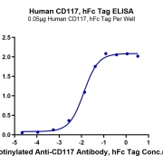 Immobilized Human CD117, hFc Tag at 0.5ug/ml (100ul/well) on the plate. Dose response curve for Biotinylated Anti-CD117 Antibody, hFc Tag with the EC50 of 12.7ng/ml determined by ELISA (QC Test). See testing image for detail.