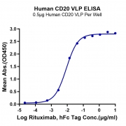 Immobilized Human CD20 VLP at 5ug/ml (100ul/Well) on plate on the plate. Dose response curve for Rituximab, hFc Tag with the EC50 of 8.7ng/ml determined by ELISA (QC Test). See testing image for detail.