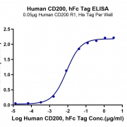 Immobilized Human CD200 R1, His Tag at 0.5ug/ml (100ul/Well) on the plate. Dose response curve for Human CD200, hFc Tag with the EC50 of 8.9ng/ml determined by ELISA. See testing image for detail.