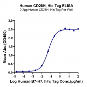 Immobilized Human CD28H, His Tag at 2ug/ml (100ul/well) on the plate. Dose response curve for Human B7-H7, hFc Tag with the EC50 of 52.7ng/ml determined by ELISA. See testing image for detail.