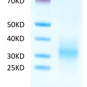 The protein has a predicted MW of 15.72 kDa. Due to glycosylation, the protein migrates to 25-40 kDa based on Tris-Bis PAGE result.
