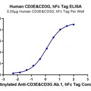 Immobilized Human CD3E&CD3G, hFc Tag at 0.5ug/ml (100ul/Well). Dose response curve for Biotinylated Anti-CD3E&CD3G Ab.1, hFc Tag with the EC50 of 1.22ug/ml determined by ELISA. See testing image for detail.