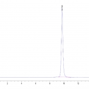 The protein has a predicted MW of 37.2 kDa. Due to glycosylation, the protein migrates to 40-50 kDa based on Tris-Bis PAGE result.