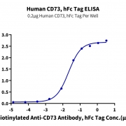 Immobilized Human CD73, hFc Tag at 2ug/ml (100ul/well) on the plate. Dose response curve for Biotinylated Anti-CD73 Antibody, hFc Tag with the EC50 of 22.6ng/ml determined by ELISA (QC Test). See testing image for detail.
