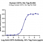 Immobilized Human CD74 at 0.5ug/ml (100ul/Well) on the plate. Dose response curve for Anti-CD74 Antibody, hFc Tag with the EC50 of 8.9ng/ml determined by ELISA. See testing image for detail.
