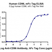 Immobilized Human CD96, mFc Tag at 2ug/ml (100ul/Well) on the plate. Dose response curve for Anti-CD96 Antibody, hFc Tag with the EC50 of 25.9ng/ml determined by ELISA (QC Test). See testing image for detail.