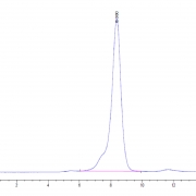 The protein has a predicted MW of 49.16 kDa. Due to glycosylation, the protein migrates to 55-70 kDa based on Tris-Bis PAGE result.