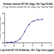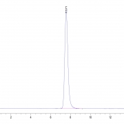 The protein has a predicted MW of 48.7 kDa. Due to glycosylation, the protein migrates to 65-68 kDa based on Tris-Bis PAGE result.