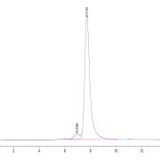 The protein has a predicted MW of 59.1 kDa. Due to glycosylation, the protein migrates to 72-78 kDa based on Tris-Bis PAGE result.