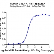Immobilized Human CTLA-4, His Tag at 0.5ug/ml (100ul/Well) on the plate. Dose response curve for Anti-CTLA-4 Antibody, hFc Tag with the EC50 of 12.1ng/ml determined by ELISA (QC Test). See testing image for detail.
