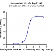 Immobilized Human CXCL13, hFc Tag at 0.5ug/ml (100ul/well) on the plate. Dose response curve for Biotinylated Anti-CXCL13 Antibody, hFc Tag with the EC50 of 17.2ng/ml determined by ELISA. See testing image for detail.