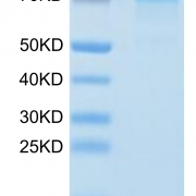 The protein has a predicted MW of 45.9 kDa. Due to glycosylation, the protein migrates to 70-75 kDa based on Tris-Bis PAGE result.