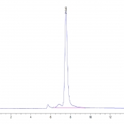 The protein has a predicted MW of 34.5 kDa. Due to glycosylation, the protein migrates to 40-50 kDa based on Tris-Bis PAGE result.