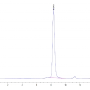 The protein has a predicted MW of 42.34 kDa. Due to glycosylation, the protein migrates to 50-55 kDa based on Tris-Bis PAGE result.