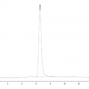 The protein has a predicted MW of 39.5 kDa. Due to glycosylation, the protein migrates to 55-70 kDa based on Tris-Bis PAGE result.
