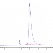 The protein has a predicted MW of 42.08 kDa. Due to glycosylation, the protein migrates to 55-65 kDa based on Tris-Bis PAGE result.
