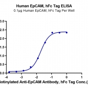 Immobilized Human EpCAM, hFc Tag at 1ug/ml (100ul/well) on the plate. Dose response curve for Biotinylated Anti-EpCAM Antibody, hFc Tag with the EC50 of 18.9ng/ml determined by ELISA. See testing image for detail.