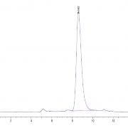 The protein has a predicted MW of 48.7 kDa. Due to glycosylation, the protein migrates to 55-65 kDa based on Tris-Bis PAGE result.