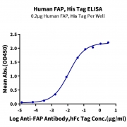 Immobilized Human FAP, His Tag at 2ug/ml (100ul/Well) on the plate. Dose response curve for Anti-FAP Antibody, hFc Tag with the EC50 of 12.3ng/ml determined by ELISA (QC Test). See testing image for detail.
