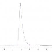 The protein has a predicted MW of 58.4 kDa. Due to glycosylation, the protein migrates to 70-80 kDa based on Tris-Bis PAGE result.