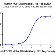 Immobilized Human FGFR2 alpha (IIIb) , His Tag at 0.5ug/ml (100ul/Well) on the plate. Dose response curve for Anti-FGFR2 alpha (IIIb) Antibody, hFc Tag with the EC50 of 10.4ng/ml determined by ELISA. See testing image for detail.