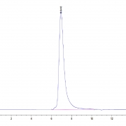The protein has a predicted MW of 40.6 kDa. Due to glycosylation, the protein migrates to 60-70 kDa based on Tris-Bis PAGE result.
