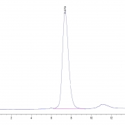 The protein has a predicted MW of 26.4 kDa. Due to glycosylation, the protein migrates to 45-60 kDa based on Tris-Bis PAGE result.