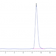 The protein has a predicted MW of 35.93 kDa. Due to glycosylation, the protein migrates to 40-55 kDa based on Tris-Bis PAGE result.