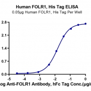 Immobilized Human FOLR1, His Tag at 0.5ug/ml (100ul/Well) on plate.Dose response curve for Anti-FOLR1 Antibody, hFc Tag with the EC50 of 15ng/ml determined by ELISA. See testing image for detail.