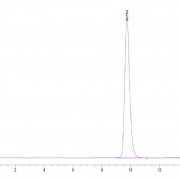 The protein has a predicted MW of 26.63 kDa. Due to glycosylation, the protein migrates to 32-45 kDa based on Tris-Bis PAGE result.