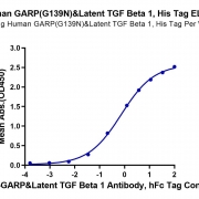 Immobilized Human GARP (G139N) &Latent TGF Beta 1 Complex, His Tag at 5ug/ml (100ul/well) on the plate. Dose response curve for Anti-GARP&Latent TGF Beta 1 Antibody, hFc Tag with the EC50 of 0.73ug/ml determined by ELISA. See testing image for detail.