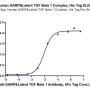 Immobilized Human GARP&Latent TGF Beta 1 Complex at 5ug/ml (100ul/Well) on the plate. Dose response curve for Anti-GARP&Latent TGF Beta 1 Antibody, hFc Tag with the EC50 of 9.3ng/ml determined by ELISA. See testing image for detail.