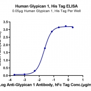Immobilized Human Glypican 1, His Tag at 0.5ug/ml (100ul/well) on the plate. Dose response curve for Anti-Glypican 1 Antibody, hFc Tag with the EC50 of 21.9ng/ml determined by ELISA (QC Test). See testing image for detail.