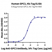 Immobilized Human GPC3, His Tag at 0.5ug/ml (100ul/Well). Dose response curve for Anti-GPC3 Antibody, hFc Tag with the EC50 of 4.7ng/ml determined by ELISA. See testing image for detail.