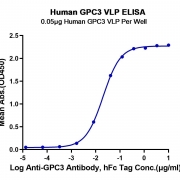 Immobilized Human GPC3 VLP at 0.5ug/ml (100ul/Well) on the plate. Dose response curve for Anti-GPC3 Antibody, hFc Tag with the EC50 of 20.2ng/ml determined by ELISA. See testing image for detail.