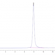 The protein has a predicted MW of 67.2 kDa. Due to glycosylation, the protein (pro form) migrates to 85-100 kDa based on Tris-Bis PAGE result.